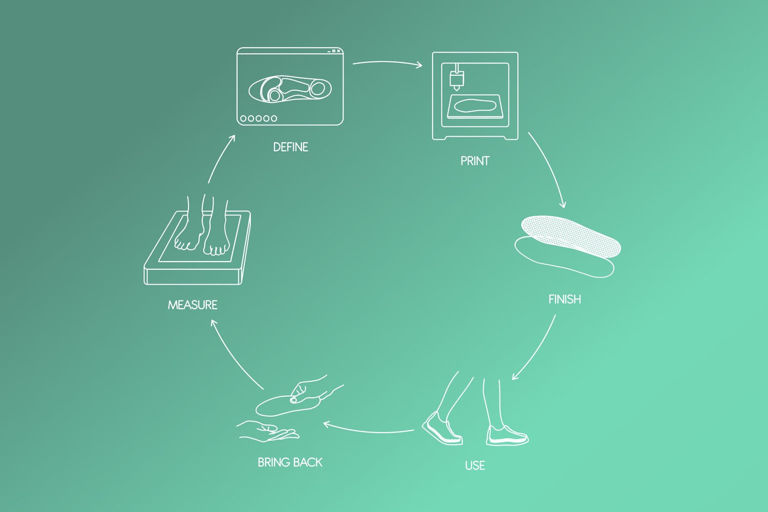 Das garantiert Schnelligkeit, Präzision und Individualität. Hierfür werden Messungen Ihrer Füße mittels 2D Scanner gemacht, aus den Ergebnissen die Sohlen konstruiert und im 3D Drucker gedruckt.